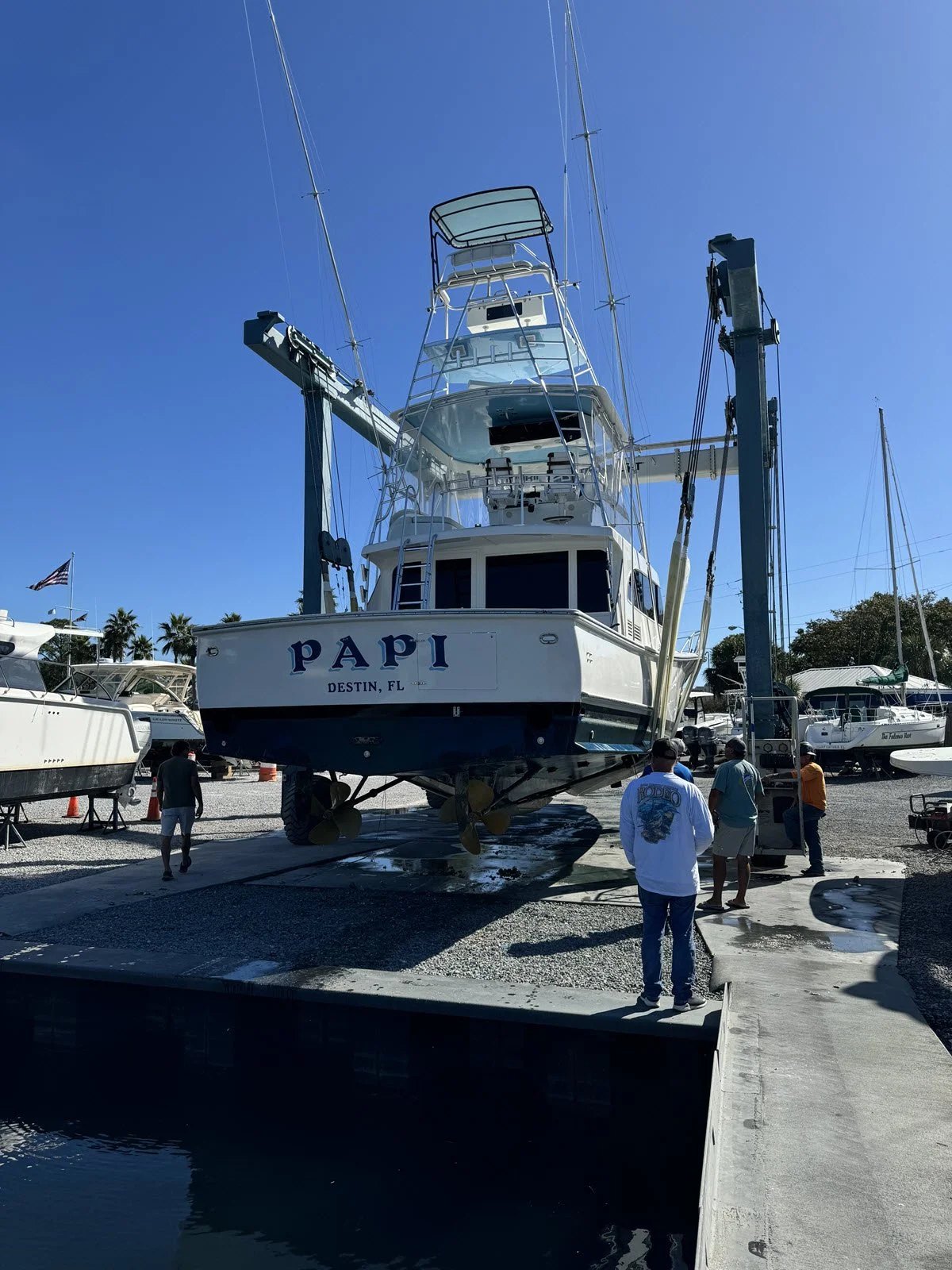 Our yard regularly services everything from bay boats and center consoles to offshore fishing boats, sportfish, and cruising yachts for customers seeking boatyard haul-out services in Destin, Fort Walton Beach, Niceville, Miramar Beach and the surrounding Emerald Coast. Our haul-out capability also makes us uniquely equipped to service larger outboard-powered center consoles that are not easily trailered.