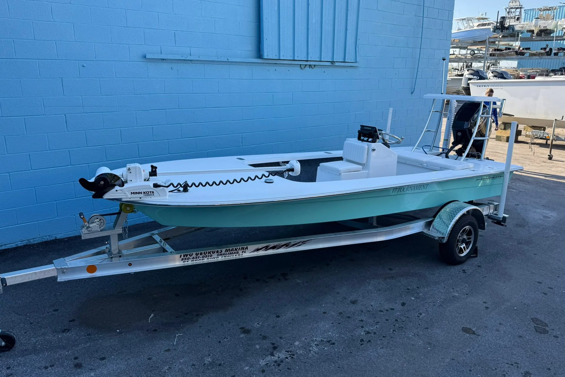 Mitzi Skiffs are semi-custom and built to order, with a variety of options. Two Georges Marine has built a strong relationship with the builder and stands ready to help you spec your skiff, secure your build spot, and take delivery.